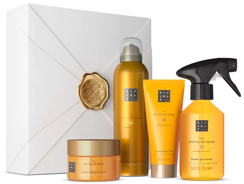Подарунковий набір The Ritual of Mehr від Rituals size M — ідеальний подарунок для друзів, родини чи просто для себе! Колекція Ritual of Mehr була створена, щоб зарядити енергією тіло, розум і душу. Збагачений підбадьорливим ароматом солодкого апельсина та кедрового дерева, кожен продукт цієї колекції дарує гарний настрій і наповнює серце щастям. У подарунковий набір входить: