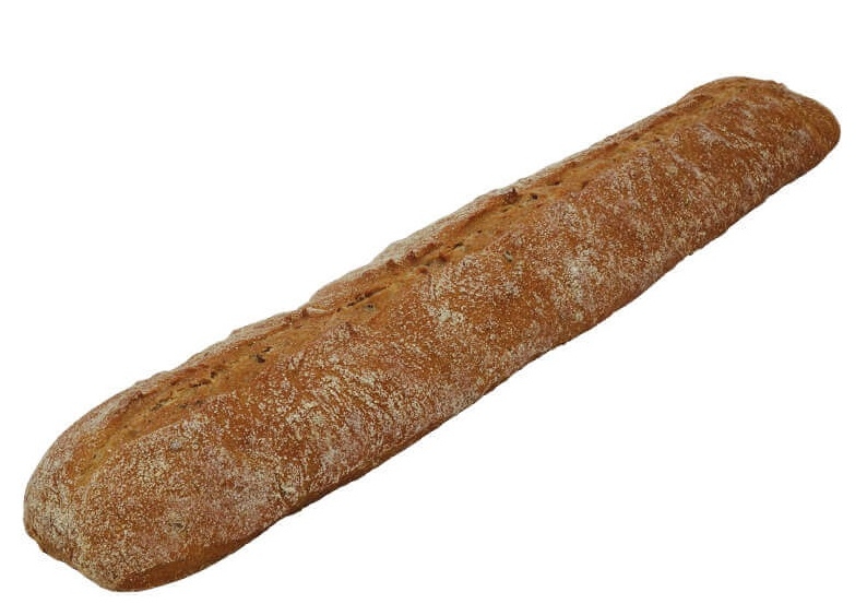 Склад: борошно пшеничне в/с, вода питна, суміш хлібопекарська, дріжджі, сіль кухонна харчова, закваска пшенична, покращувач хлібопекарський, олія соняшникова рафінована дезодорована. |