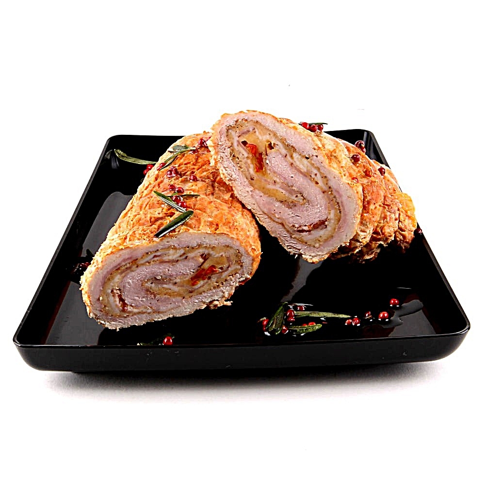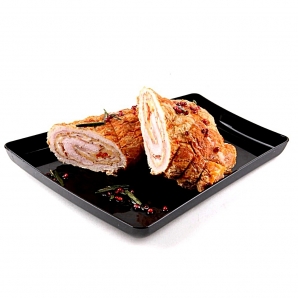 М`ясо індички, сир Качотта, панчетта Белуччі. Запікається в печі.