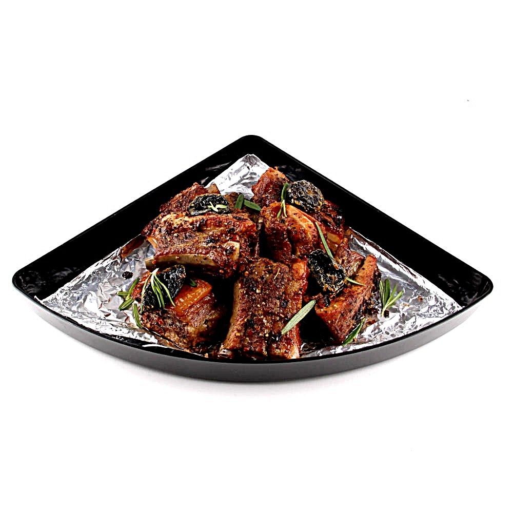 Ребра свинячі томлені в печі до 4 годин, Карамелізований чорнослив з волоським горіхом |