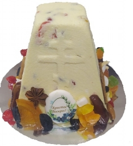 Власне виробництво. Склад: творог Президент 15%, яйця, цукор, масло вершкове Органік 82%, ванілін, вершки натуральні "Майстер Шеф", сухофрукти: фінік, родзинки, курага, вишня, горіх міндальний. |