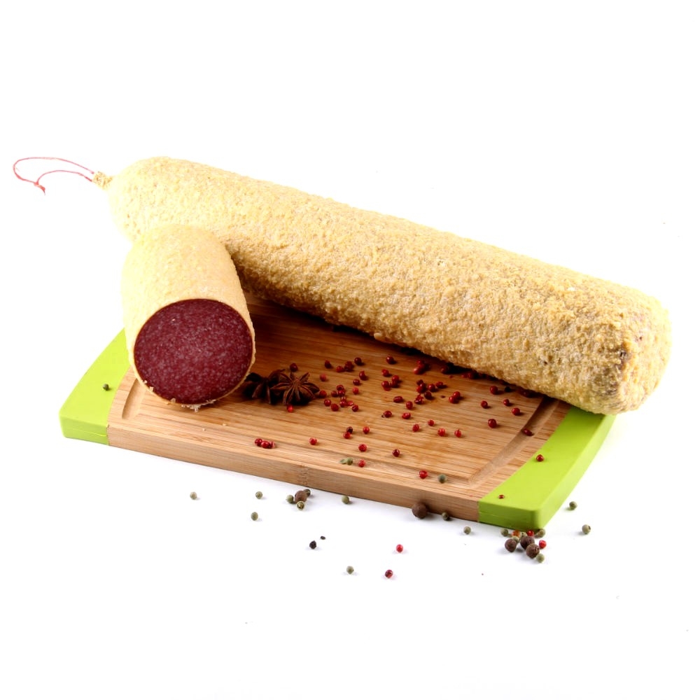 Сирокопчена салямі в пармезані, яка славиться своїм неперевершеним м`ясним смаком та насиченим пряним ароматом. |