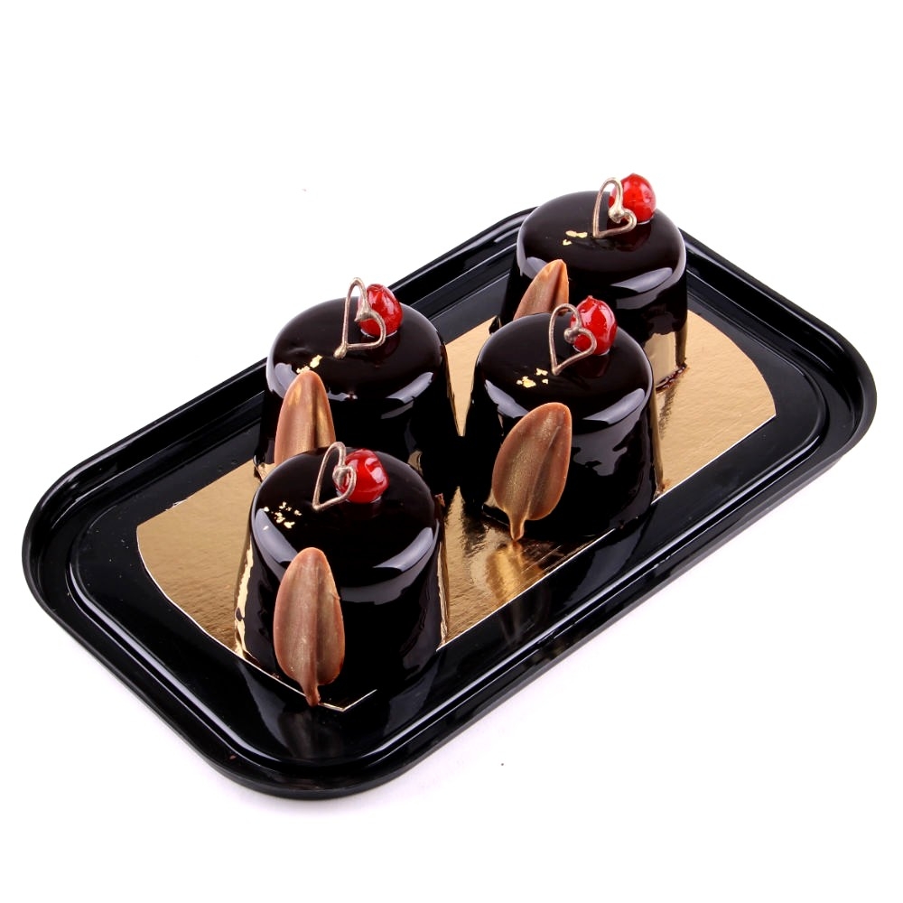 Шоколадний бісквіт з грецьким горіхом, просочений ромом Bacardi Blanca. Шоколадно-вишневий ганаш. Зверху декороване дзеркальною глазур`ю. Склад: бісквіт, вишня, шоколад. Термін придатності 3 доби. |