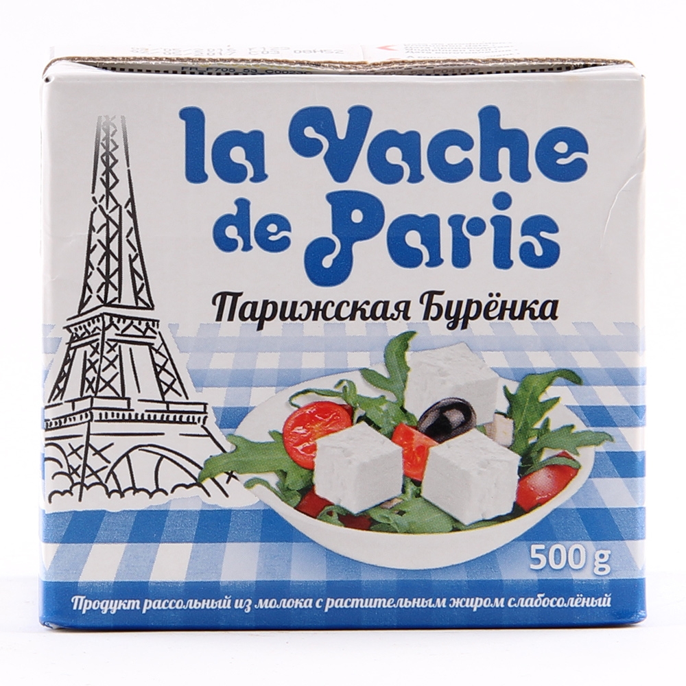 Паризька корівка - м`який розсольний сир типу фета. Виробляється зі свіжого знежиреного коров`ячого молока. Поживний, смачний, здоровий (низький рівень холестерину) продукт, Паризька Корівка додає приємний смак в кожній страві. Можна використовувати в салатах і в деяких інших рецептах. |