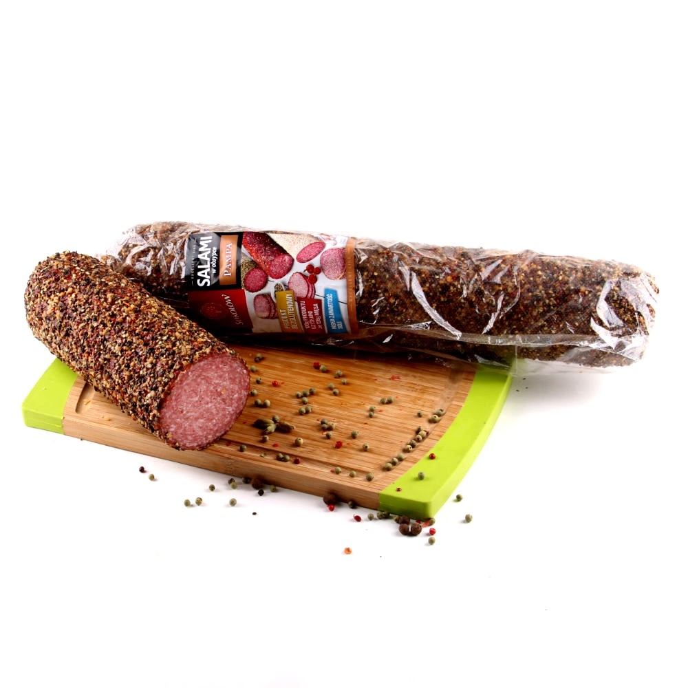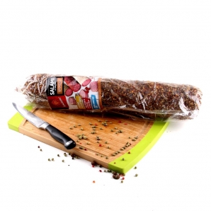 Салямі Пампа з перцем - це вищої якості продукт, виготовлений з відбірної свинини. Тривалий процес сушіння і дозрівання, у поєднанні з правильно підібраними спеціями надає гострий смак і аромат. Салямі чудово підходить для бутербродів, для приготування салатів або на піцу. |