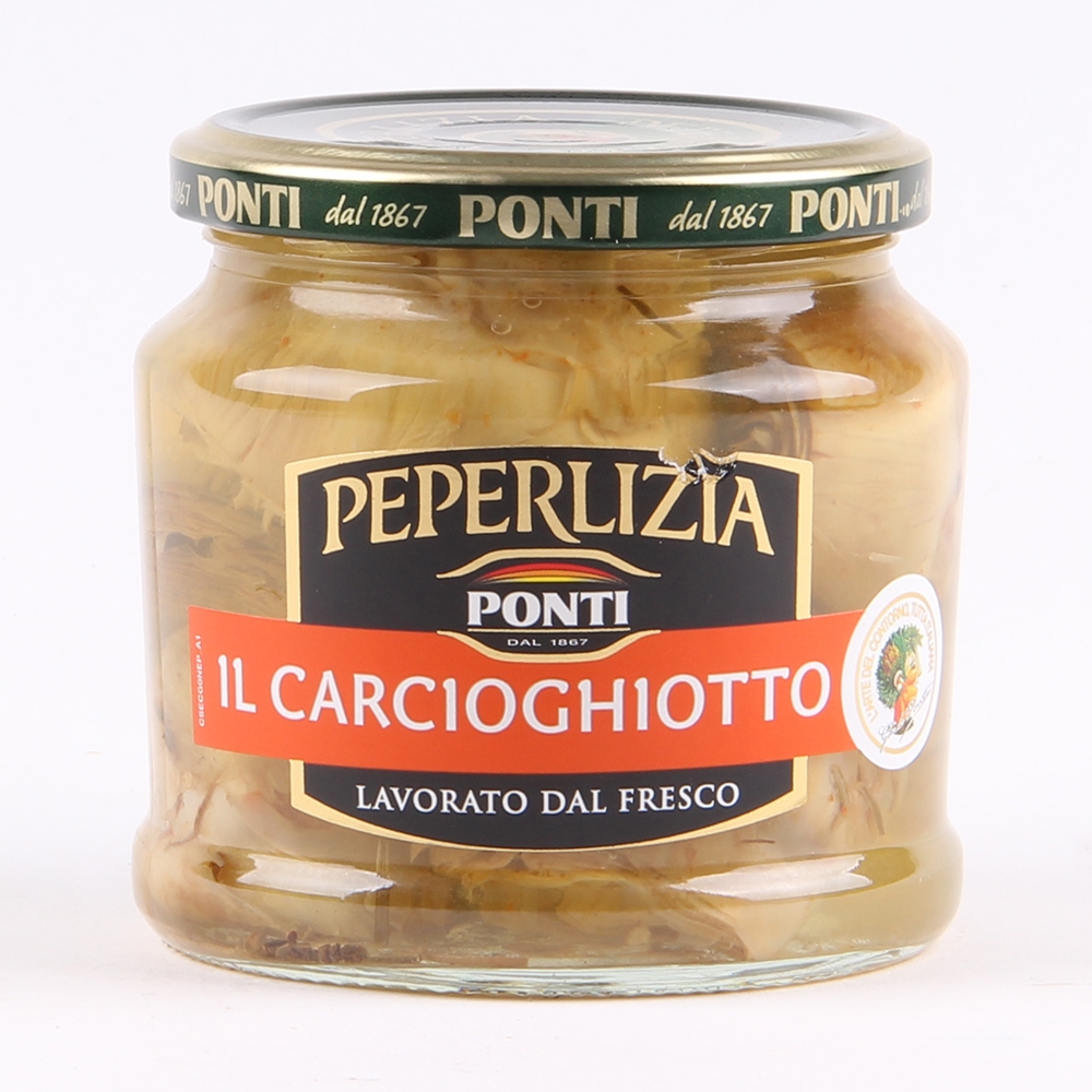 Артишоки в соняшниковій олії з винним оцетом та спеціями. Артишок - це квітка, яку вживають в їжу. Вживання артишоків різноманітно - їх подають як самостійну страву, і як гарнір, з ним роблять салати і піци, також його додають до паст, тушкованих страв і пирогів. З артишоками готують навіть десерти і хліб. Артишоки подають в гарячому і в холодному вигляді. |