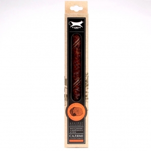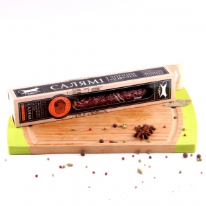 Салямі з чорним трюфелем - делікатес, не знаючий рівних серед кращих. Супроводі делікатною суміші прянощів створюють дивовижний, захоплюючий смак, який неможливо сплутати з іншими. Рекомендується подавати салямі з чорним трюфелем у вигляді закуски з пармезаном (Парміджано Реджано) і червоним вином. |