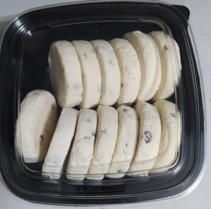 Склад: сир 9%, яйця, борошно, ванілін, родзинки. Термін прідатності 4 міс. при t -18C.